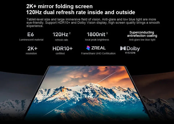 DISPLAY Type Foldable LTPO4 AMOLED, 120Hz, HDR10+, Dolby Vision, 1800 nits (peak)